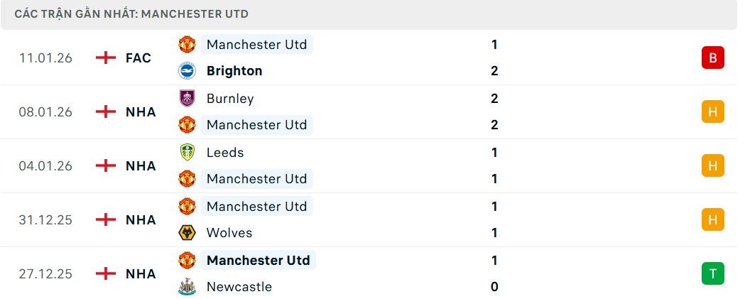 MU đang phải trải qua giai đoạn thi đấu đầy khó khăn khi chưa thể giành chiến thắng nào trong năm 2026. Con đường đến danh hiệu và suất dự cúp châu Âu đang trở nên mong manh sau khi bị loại khỏi FA Cup cuối tuần trước. Họ cũng liên tục phải chịu cảnh chia điểm trước 2 đối thủ yếu hơn tại Premier League là Leeds Utd (1-1), Burnley (2-2).